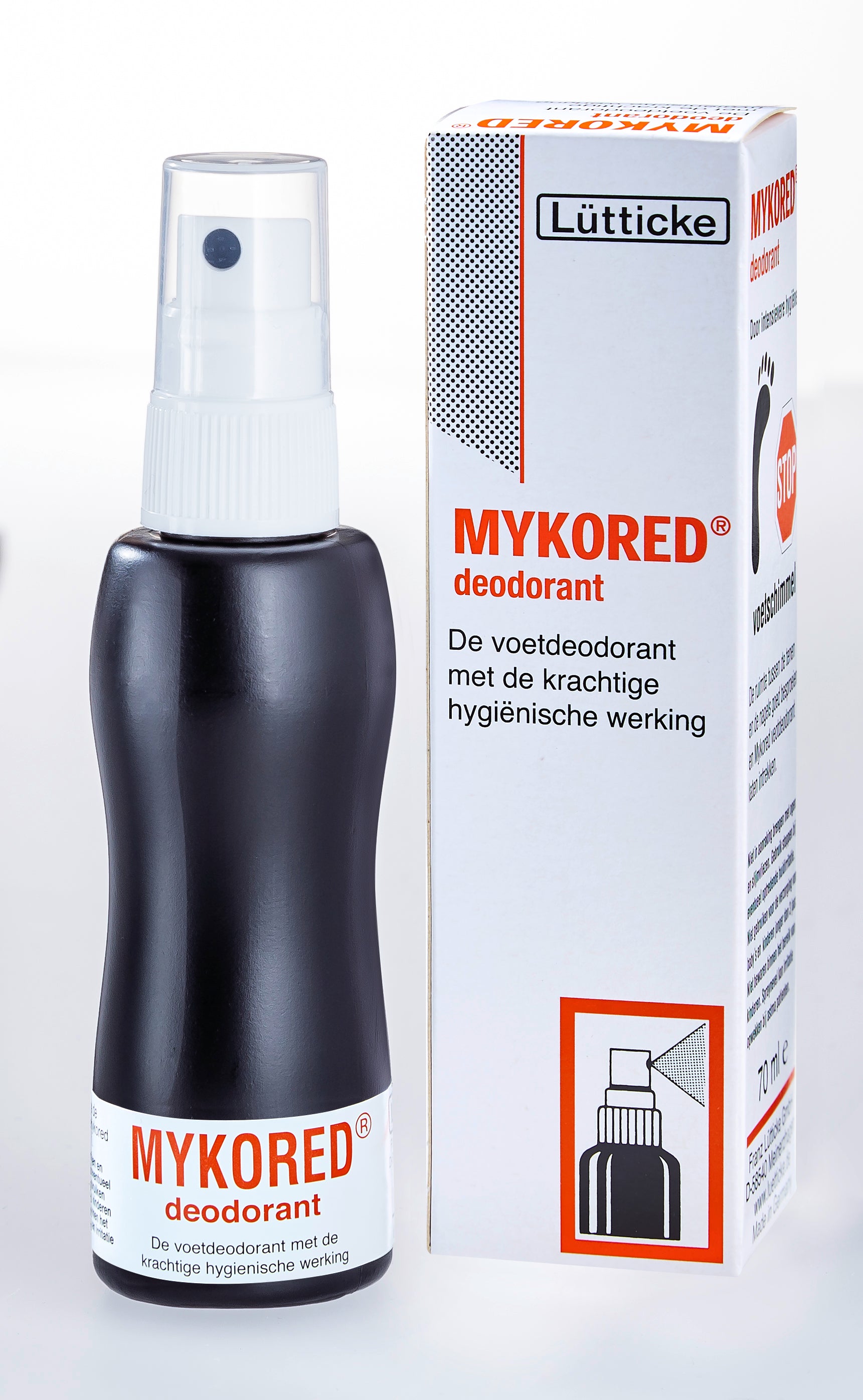 De Mykored spray is speciaal ontwikkeld voor de verzorging van teennagels en de ruimte tussen de tenen. De oplossing bestrijd onaangename luchtjes van de voeten. De verkoelende deodorant verhoogt de weerstand van de voeten tegen invloeden van buitenaf en bestrijdt stinkvoeten. Zodoende stimuleert Mykored voet deodorant het welzijn van de voeten. De deodorant bevat onder andere isopropyl alcohol wat een reinigende en ontsmettende werking heeft.